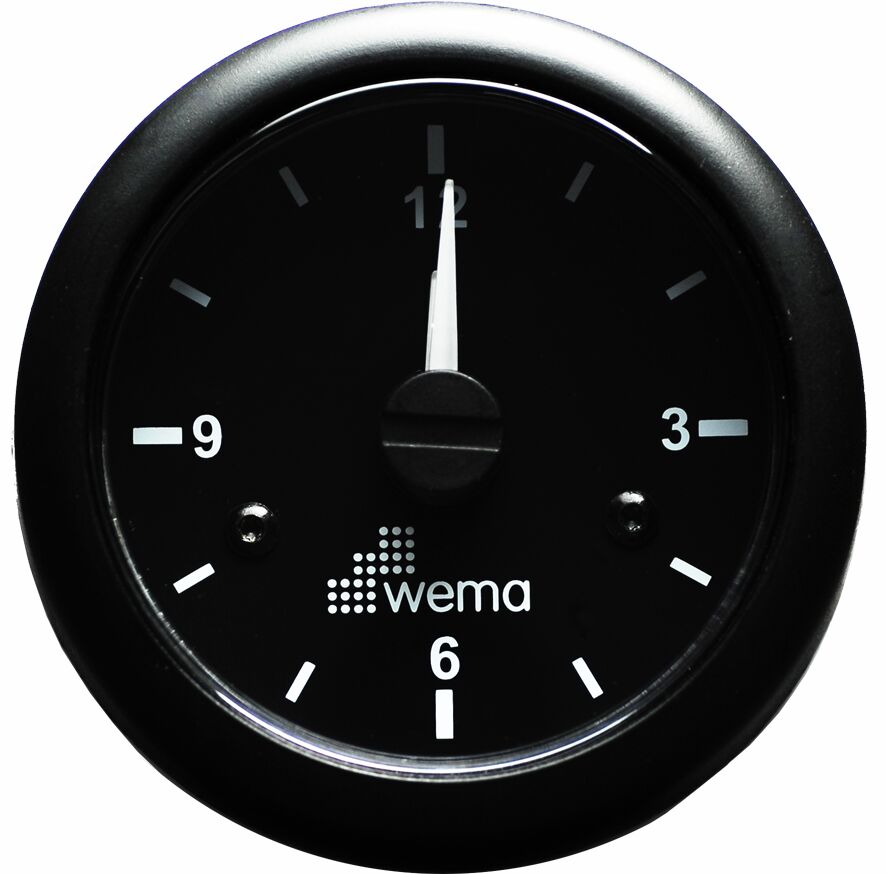 Kvartsikello. Asennus-Ø 52 mm, asennussyvyys 55 mm, kokonais-Ø 62 mm. Vakiona punainen ja keltainen valaistus. Käyttöjännite 12 /24 V. Kello vaatii jatkuvan virtasyötön, sillä siinä ei ole muistiparistoa. Musta pohja / musta kehys.