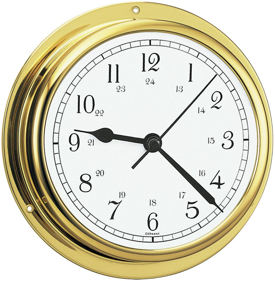 Analoginen kello kiillotettua messinkiä. Näytön halkaisija 130 mm, ulkomitat 155 x 35 mm.