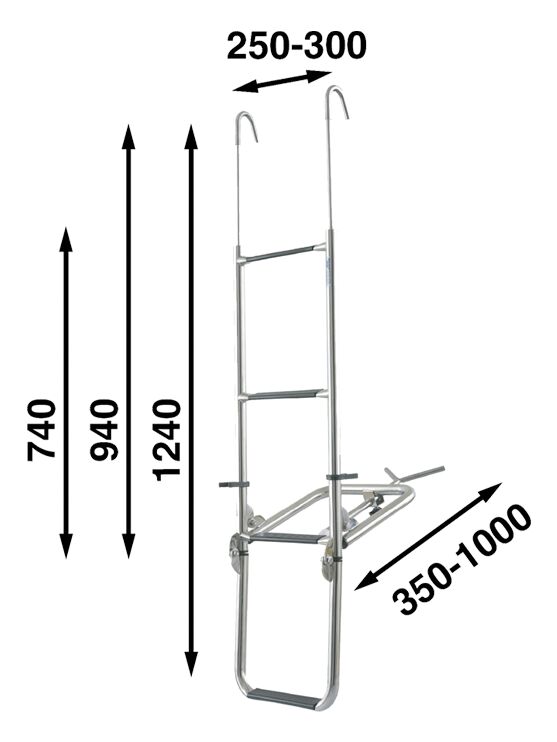 Suora malli, joka sopii useimpiin purjeveneisiin ilman keula-ankkuria. Neljä tasaista askelta käyttömukavuuden parantamiseksi. Viimeinen askel voidaan taittaa pituuden säätämiseksi. Helppo kiinnittää ja irrottaa tarvittaessa.<br /> <br />Tikkaat asennetaan suoraan pulpettiin kansikiinnikkeillä (tuotenro. P1043, 9519037453) tai säädettävillä pulpettikiinnikkeillä (tuotenro. P1066, 9519037591). Säädettävä kiinnitysvarsi asetetaan keulaan veneelle sopivaan kulmaan ja pituuteen.<br /> <br />Valmistettu eloksoidusta alumiinista, mikä tarjoaa kulutusta kestävän pinnan hyvällä ruostesuojalla. Alumiini on mahtava materiaali, joka tekee tikkaista tukevan ja helpon käsitellä.<br /><br />Pituus: 1240 mm<br />Pituus, taitettuna: 740 mm <br />Leveys: 250-300 mm<br />Pituus, keulatikkaat: 350-1000 mm<br />Askelta: 4<br />Materiaali: Alumiini<br />Kiinnikkeet: Koukku