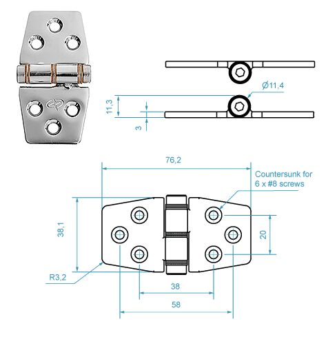 Roca-kitkasaranat (AISI304). Korvaavat kaasujouset ja luukunpidikkeet tietyissä asennuksissa. Käytännölliset erilaisissa luukuissa ja lokeron kansissa. 38,1 x 76,2 mm ylätappi.