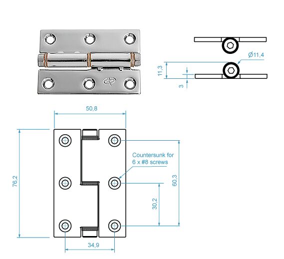 Roca-kitkasaranat (AISI 304). Korvaavat kaasujouset ja luukunpidikkeet tietyissä asennuksissa. Käytännölliset erilaisissa luukuissa ja lokeron kansissa. 76,2 x 50,8 mm ylätappi.