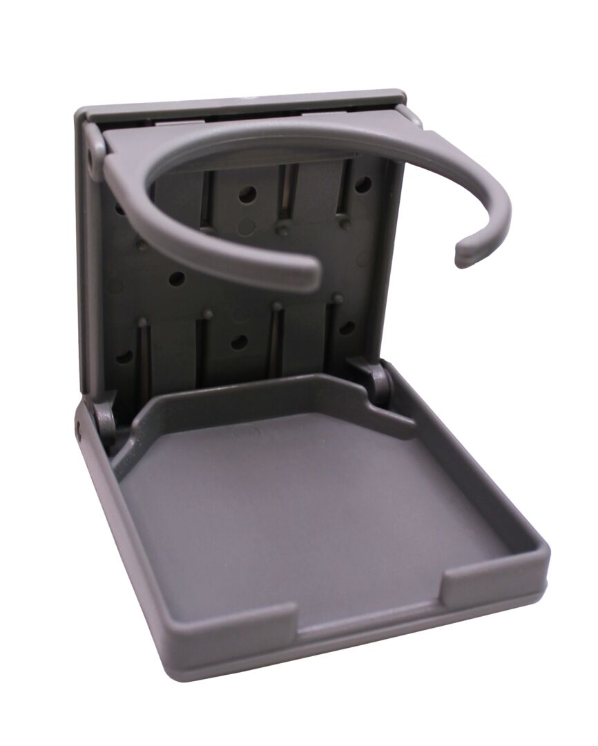 Kokoontaitettava lasiteline harmaata muovia, kiinnitetään ruuveilla alustaan. Koko 90 x 90 mm.
