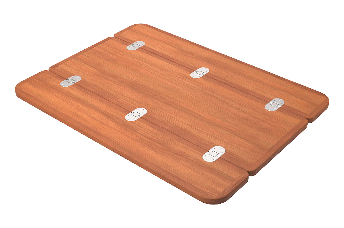 Tämä massiivipuinen pöytälevy on valmistettu laadukkaasta tiikkiviilusta, joka antaa sille ainutlaatuisen ja luonnollisen ulkonäön. Tiikkiviilu on erittäin kestävä materiaali, joka sopii täydellisesti pöytälevyihin, sillä se kestää hyvin kulutusta ja naarmuuntumista.<br />Pöytälevy auki 60 x 90 cm. Pöytälevy kiinni 31 x 90 cm.<br />