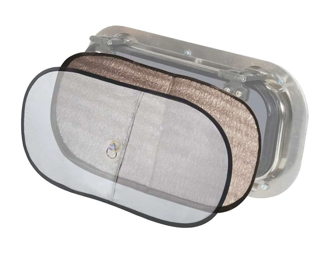 Hopeinen kalvo on erittäin tehokas heijastamaan lämpöä. Eriste toimii samalla tavalla, kuin aurinkosuoja auton kojelaudalla. Savulasinen luukku voi kuumeta erittäin kuumaksi aurinkoisena päivänä. Kosteus-/lämpöeriste toimii täydellisesti myös veneiden kanssa, joissa veneen sisä- ja ulkolämpötilan ero aiheuttaa kosteutta sisätiloihin. Kosteus-/lämpöeristys asennettaan lisäkerroksena hyttysverkon tai kaihtimen ja luukun väliin. Kosteus-/lämpöeristettä voidaan käyttää yhdessä Waterline Design -hyttysverkon tai kaihtimen kanssa. Sopii luukun kaihtimeen 1330 (9512066327) ja hyönteisverkkoon 1430 (9512066333). Koko 230 x 490 mm (10' x 19'.