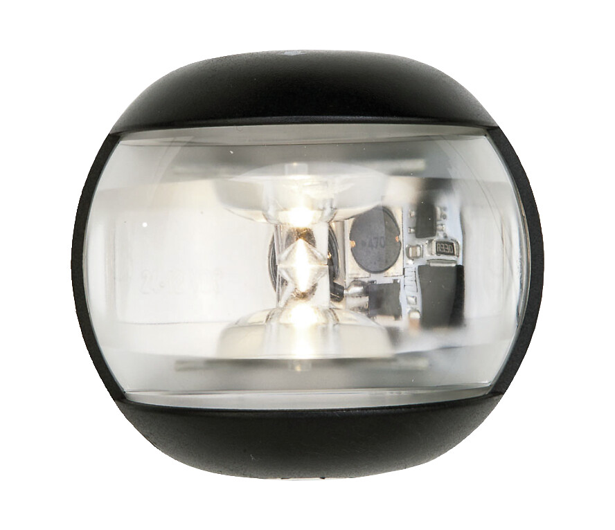 Kulkuvalo masto. Musta kuori. LED-merenkulkuvalo 12 m veneille. Käyttöjännite 6 - 32 V. Vesitiivis IP56. Musta tai valkoinen polycarbonaatti-kuori. CE-hyväksytty (RINA). Lev. 70 mm, kork. 63 mm, syv. 38 mm.