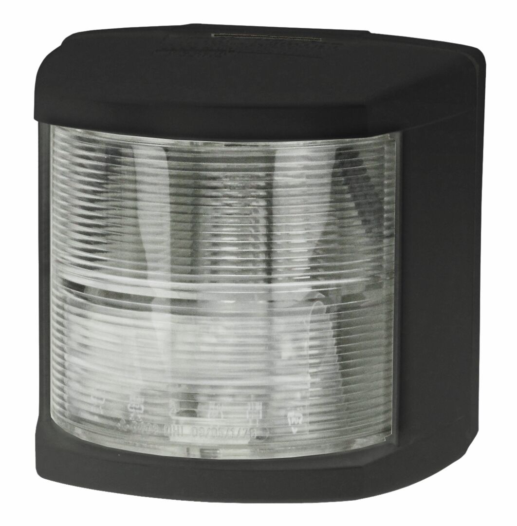 Perävalo 135° mustalla makrolon-kuorella. Alukset alle 20 metriä, SOLAS tyyppihyväksyntä NK-todistuksella. Lampunkanta BAY 15 d.
