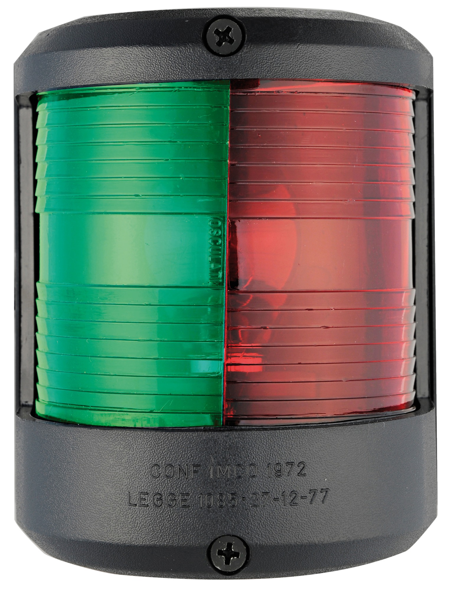 Kulkuvalo alle 20m aluksille - 12 V - Vihreä/Punainen 112.5° + 112.5° combi. 12V 25W RINA hyväksytty Musta kuori