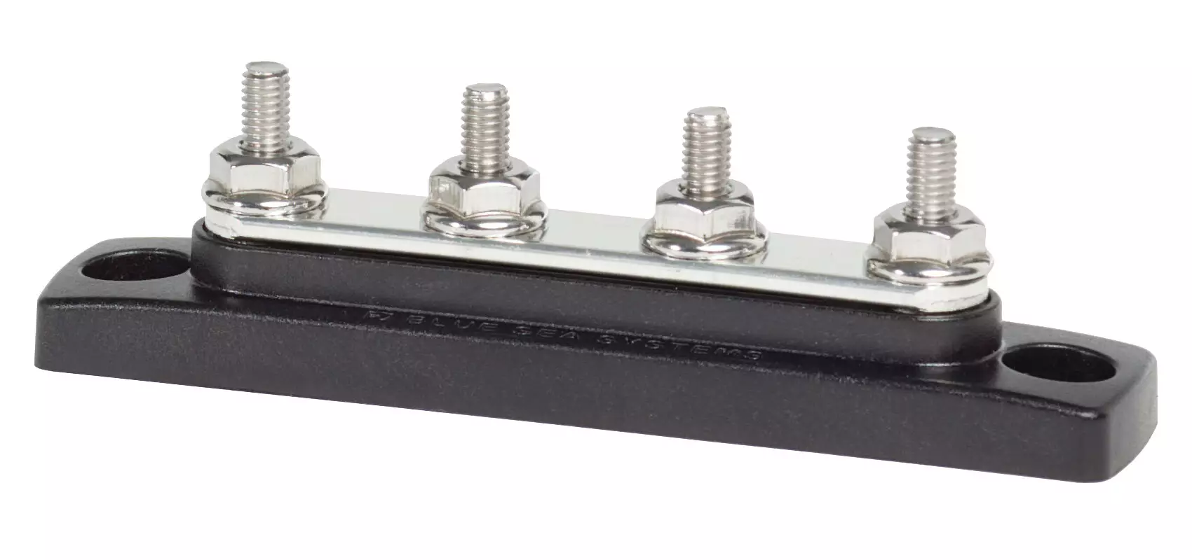 Ominaisuudet:<br />* Soveltuu erityisesti pieniin tiloihin<br />* 4 liitintä (#10-32 kierretapit)<br />* Jatkuva virrankesto: 100A<br />* Korkein käyttöjännite: 300V AC / 48V DC<br />* Kestävä pohjamateriaali: lasikuituvahvisteinen thermomuovi (UL 94-V0)<br />* Virtakiskon materiaali: Tina-pinnoitettu kupari (CDA 110 / UNS11000)<br />* Momenttisuositus liitintapeille: 2,03 Nm (18 in-lb)