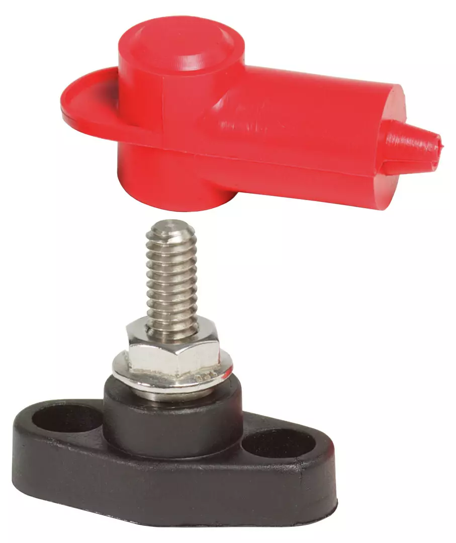 Tekniset tiedot:<br />• Väri: Punainen<br />• Maksimijännite: 48 V DC<br />• Tappikoko: 1/4' x 3/4'<br />• Runkomateriaali PBT UL94 V0 (Vahvistettu termomuovi)<br />• Suositeltava vääntömomentti: 70 in-lb (7,91 N·m)<br />