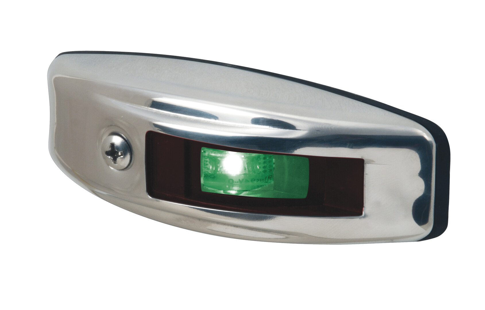 LED-sivuvalo ruostumatonta terästä, musta polymeerikanta. Tarkoitettu asennettavaksi vain pystysuoralle pinnalle. Suunniteltu käytettäväksi alle 20 metrin pituisissa moottoriveneissä.