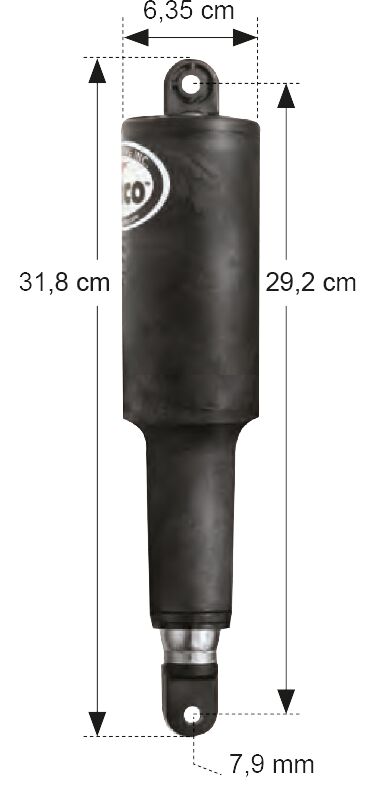 Vakiosylinteri 101. Iskupituus 57 mm, virtajohto 1,80 m (plug and play -liittimet), 7,9 mm tapille. 12 V.
