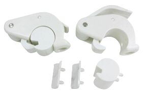 Valkoiset lepuuttajan kiinnikkeet 22 mm ja 25 mm putkelle tai 6 - 8 mm kaidevaijerille. Köyden paksuus 6 - 8 mm. Paketissa 2 kpl.