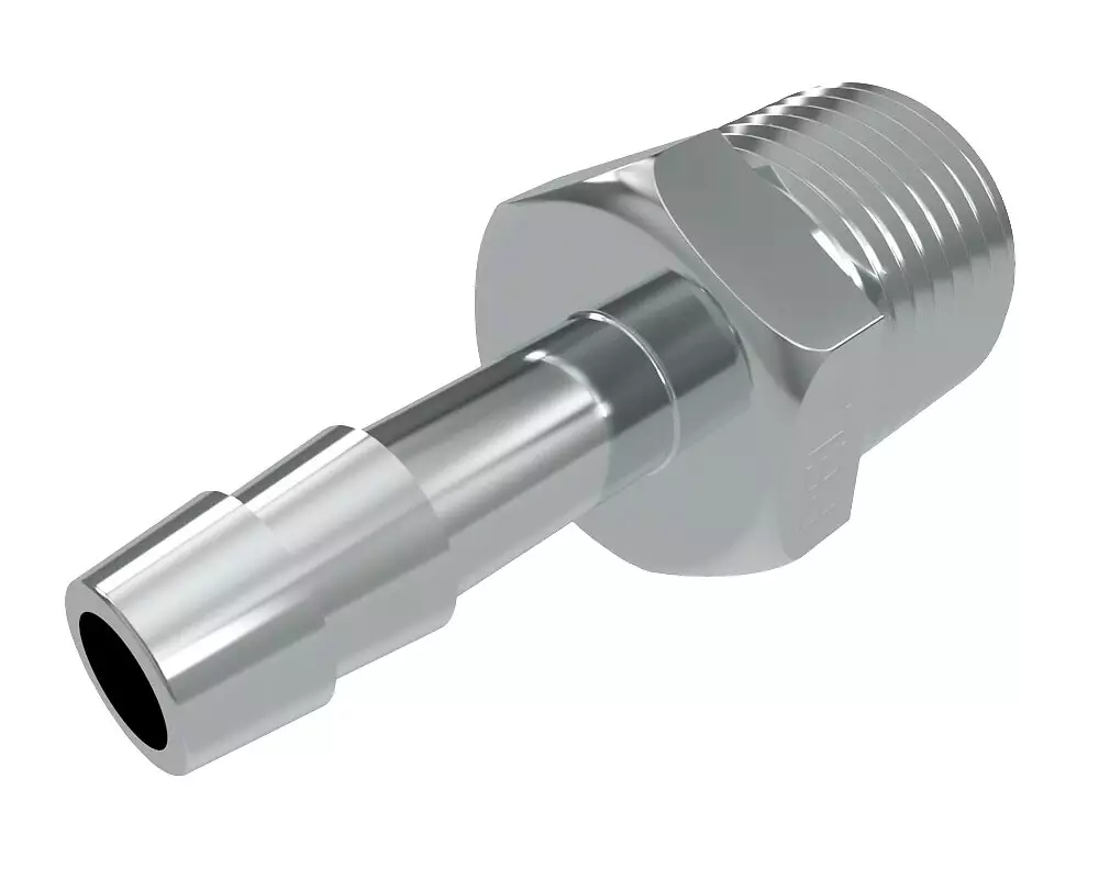 Teräksinen letkuliitin pyyhkijäjärjestelmään. Toisessa päässä on G1/4-liitäntä ja toisessa päässä 1/4-letkuliitäntä.
