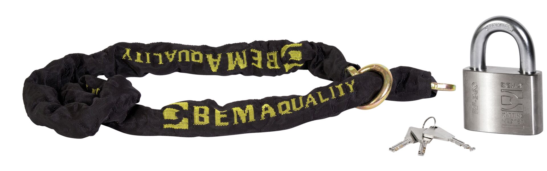 BEMA-lukituspaketit RF-360-riippulukolla ja BKM-8-3-kettingillä. SBSC:n luokkaan 3-sertifioitu. 1,5 m kettinki.
