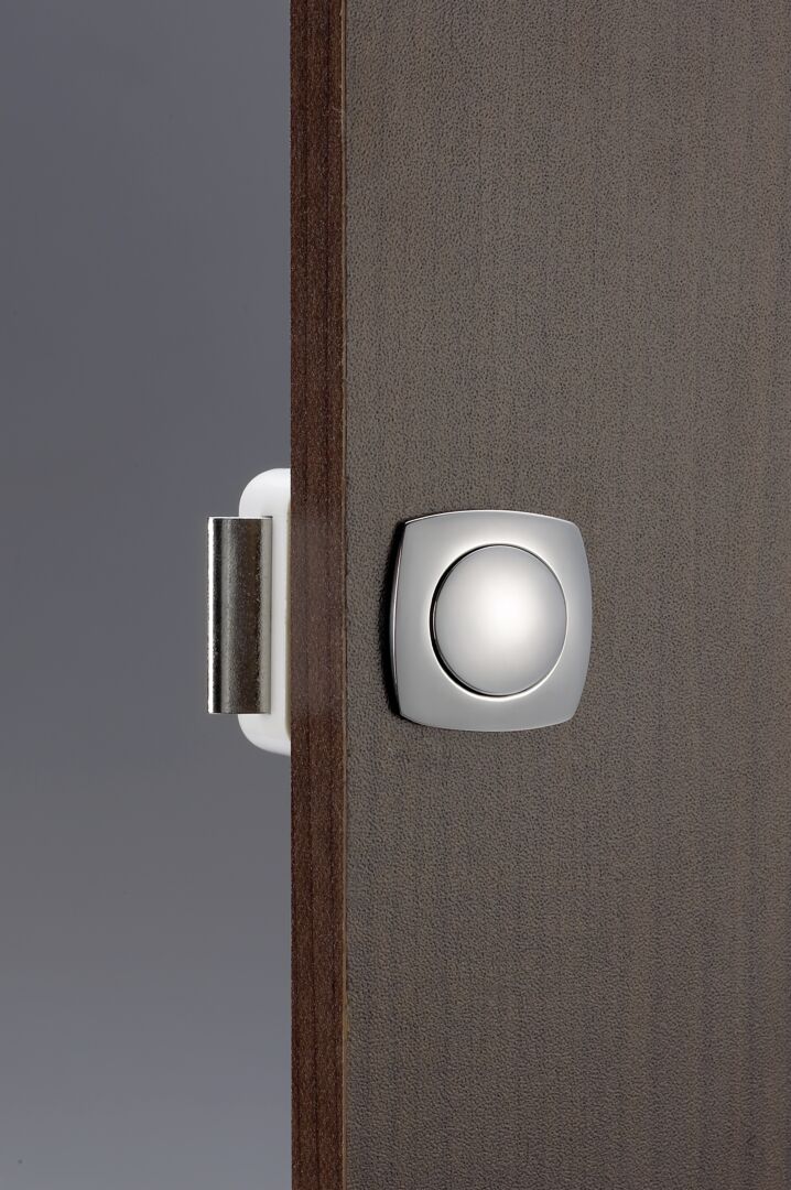 Lukkosalpa kaapin oveen, harjattua ruostumatonta terästä. Koko 48 x 35 mm, oven paksuus 19 - 25 mm. Täydellinen lukko.
