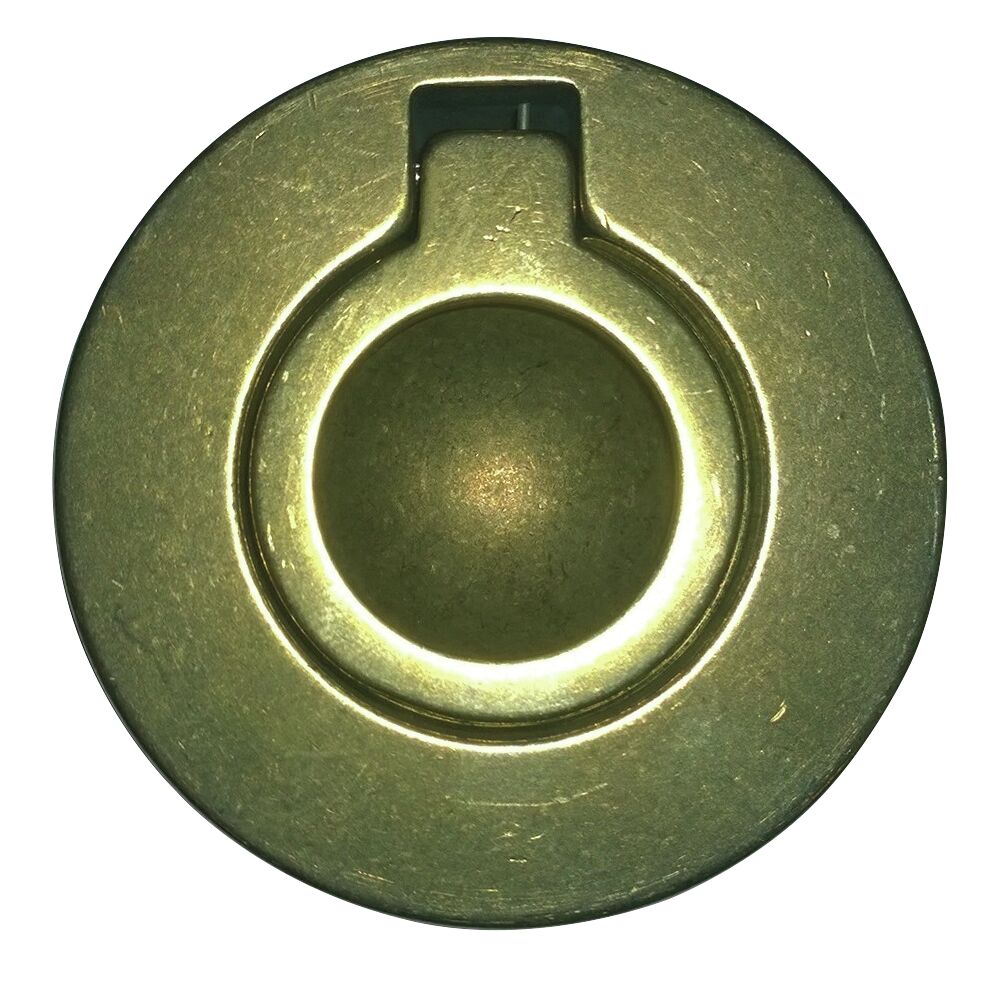 Pyöreä luukkurengas kiillotettua messinkivalua. Kiinniruuvattava alapuolelta, ei ruuvinreikiä helassa, ulko-Ø 53 mm.