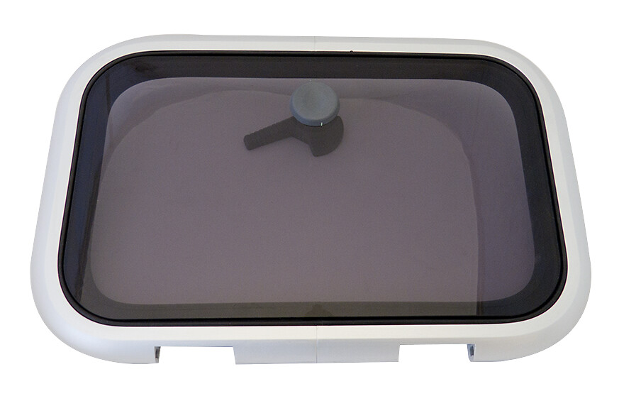 Kansiosa akryylilasilla matalaprofiiliseen Lewmar-luukkuun, koko 30 MK2. Harmaa-/hopeakehys.