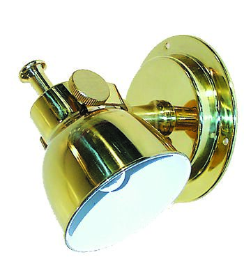 Lukuvalo kiillotettua messinkiä, polttimon 12 V, kanta BA15d. Korkeus 105 mm, pohjan halkaisija 92 mm.