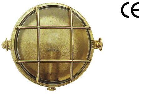 Messinkinen sisävalo kirkkaalla lasilla, max. 75 W. Kanta E27, vesitiivis IP54. Valaisimen koko 215 x 100 mm.