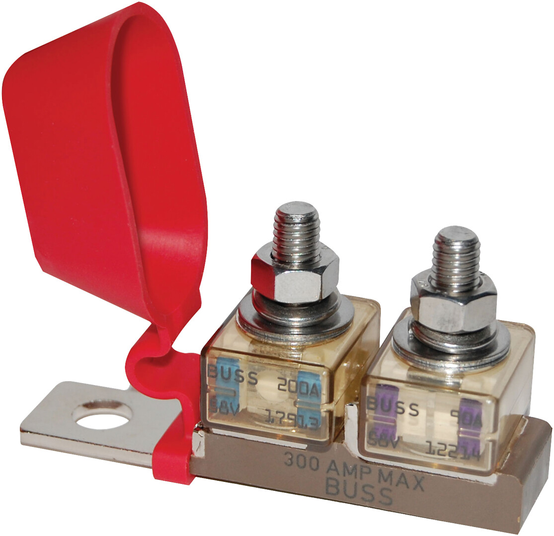 • kahdelle sulakkeelle<br />• maksimijännite: 58V DC<br />• maksimivirta (4/0-kaapelit): 300A<br />• 30A-300A terminaalisulakkeille<br />• liitintappi: M8 (5/16”)<br />• asennuseikä: 3/8” <br /><br />• kipinäsuojattu käytettäessä Blue Sea Systemsin MRBF terminaalisulakkeita<br />• säänkestävä – sopii pieniin avo-ohjaamoveneisiin ja muihin haastaviin ympäristöihin<br />• eristyshattu estää vahingossa tapahtuvat oikosulut<br />• kipinäsuojaus MRBF terminaalisulakkeita käytettäessä<br />• täyttää ABYC 7' piirin suojaussäännökset asennettaessa 3/8' akun napaan, akun kytkimeen tai virtakiskoon<br />• säännökset: Täyttää ISO 8846 ja SAE J1171 ulkoiset sytytyssuojavaatimukset