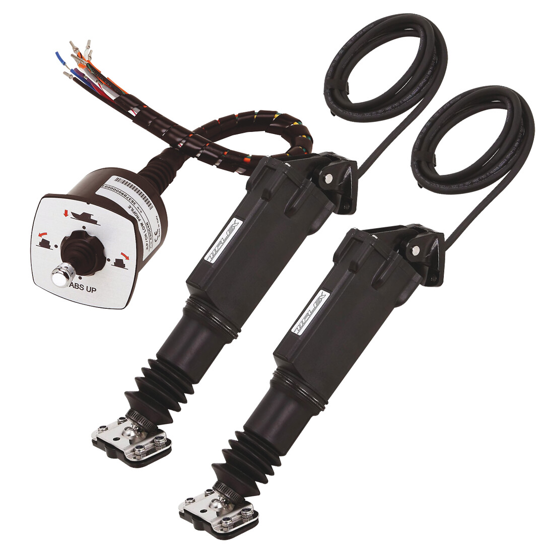 2 x AC12-sylinteriä, 12V DC + 1 krominen matalaprofiilinen ohjain. Uflex-trimmisylinterit on helppo asentaa käyttäen pikalukituksin varustettuja kiinnikkeitä; tarvitaan vain pieni reikä sylinteriä kohden. Patentoitu kiinnike sulkee johdot sisäänsä, mikä suojaa johtoja vaurioitumiselta.