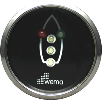 Navigointivalojen valvontamittari, Asennus-Ø 52 mm, asennussyvyys 55 mm, kokonais-Ø 62mm. Käyttöjännite 12/24 V. Mittarin mukana toimitetaan valorele, johon voidaan kytkeä sekä LED- tai hehkulamppuvalot. Kulkuvalojen käyttökytkimet tulee hankkia erikseen. Musta pohja, kehys ruostumatonta terästä.