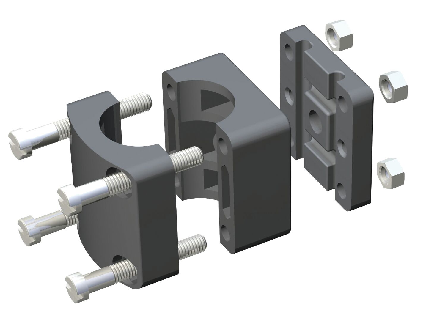Kiinnike pelastusrenkaan telineeseen, 25 mm putkelle.