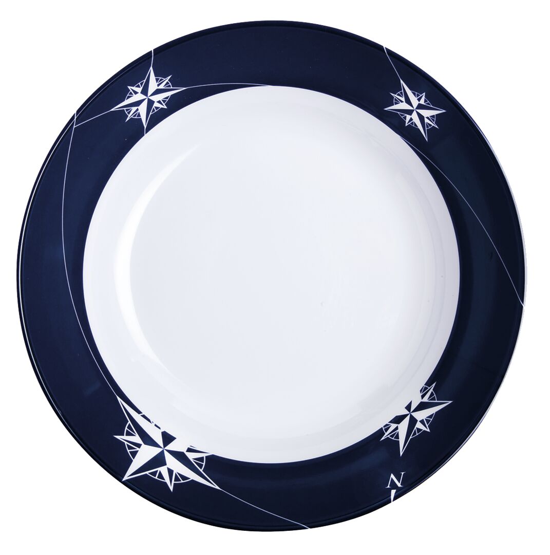 NORTHWIND-keittolautanen on valmistettu särkymättömästä melamiinista. Se on valkoinen, ja sen reunassa on pieniä, valkoisia kompassiruusuja. Ø 22,5 cm, BPA-vapaa melamiini. 6 kpl/paketti, hinta/kpl.