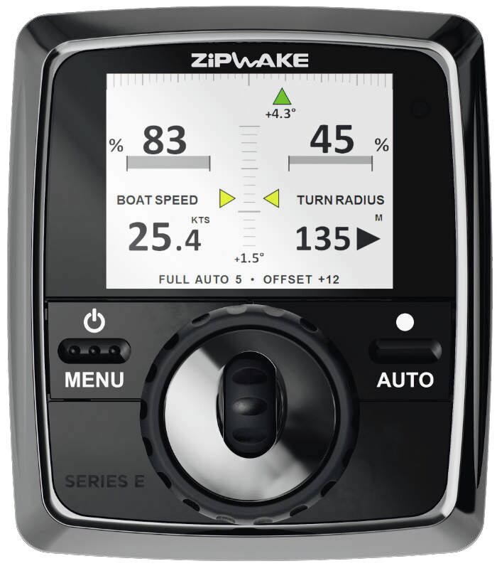 Zipwaken tyylikäs ohjainpaneeli on käyttäjäystävällinen ja intuitiivinen. Sen avulla kuljettaja voi keskittyä olennaiseen - ja nauttia veneilystä! Paneelin kaksi yksilöllistä ohjauspyörää mahdollistavat helpon ja nopean trimmin, kallistuman tai kulkusuunnan hallinnan. Järjestelmä toimii kuitenkin tavallisesti automaattisessa ohjaustilassa, mikä otetaan käyttöön painamalla AUTO-painiketta. Tässä tilassa sisäänrakennettu, korkeataajuuksinen GPS, 3D gyro-anturit ja kestävä liikkeenohjain varmistavat automaattisesti epämiellyttävien ja vaarallisten veneen pituus- ja sivuttaiskallistumisten poistamisen.