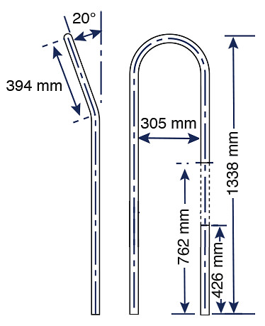 Lewmarin tartuntakaari ohjauspyörään, kallistettu. Korkeus 1338 mm. Valmistettu ruostumattomasta teräksestä AISI316, halkaisija 32 mm.