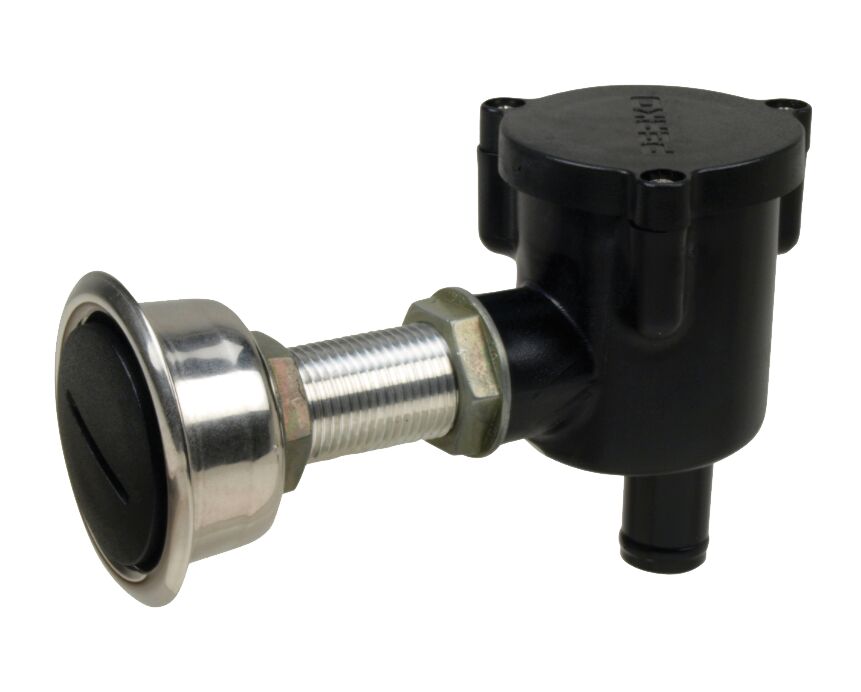 P-Trap-huohotusventtiilin ominaisuudet: • Päästää höyryn poistumaan tankista polttoaineen lämpölaajenemisen aikana • Päästää raikasta ilmaa sisälle tankkiin polttoaineen lämpökutistumisen aikana, ja kun moottori on käynnissä • Auttaa suojaamaan säiliötä ja polttoainejärjestelmää vedeltä • Ilmanohjaintyylinen huohotusaukko vähentää veden pääsyä sisään • Sisäinen P-Trap-malli auttaa estämään veden pääsyä polttoainejärjestelmään • 90°:n letkuliitäntä (huohotinakselissa) Materiaali: Polymeerirunko, jossa alumiinivarsi ja roiskesuoja ruostumatonta terästä Pinnoite: Musta tai valkoinen Huohotinletku: 5/8” huohotinlinja