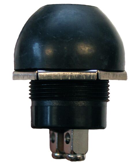 Kumisuojuksella varustettu painonappi, asennus Ø 16 - 10 mm. Pituus 40 mm.