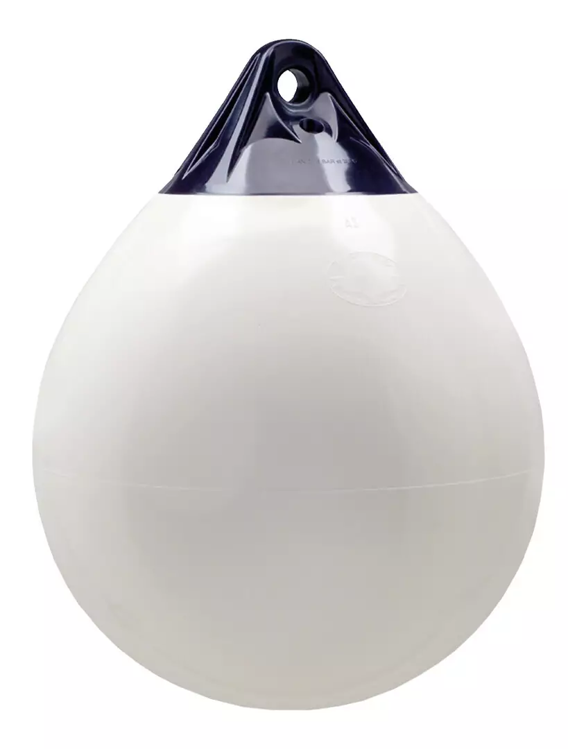 Pallolepuuttaja vinyylimuovia. Valkoinen, sinisellä vahvistetulla kiinnikkeellä varustettu.