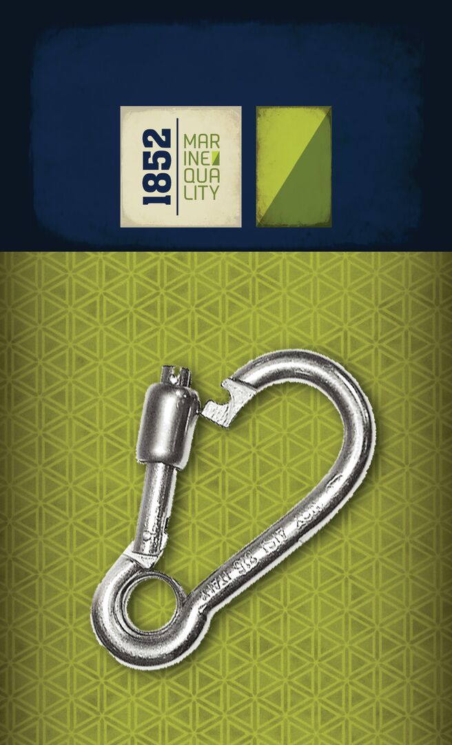 Palomiehenhaka ruostumatonta terästä, AISI316. Lukolla, lukitussalpa aukeaa ulospäin.