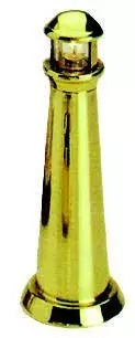 Paristokäyttöinen majakkalamppu kiillotettua messinkiä. Korkeus 150 mm.