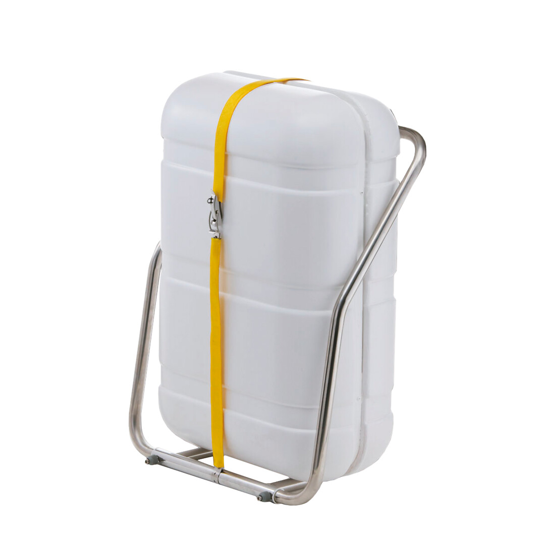 Pelastuslautan teline pystyasennusta varten, mukana muovikiinnikkeet.
