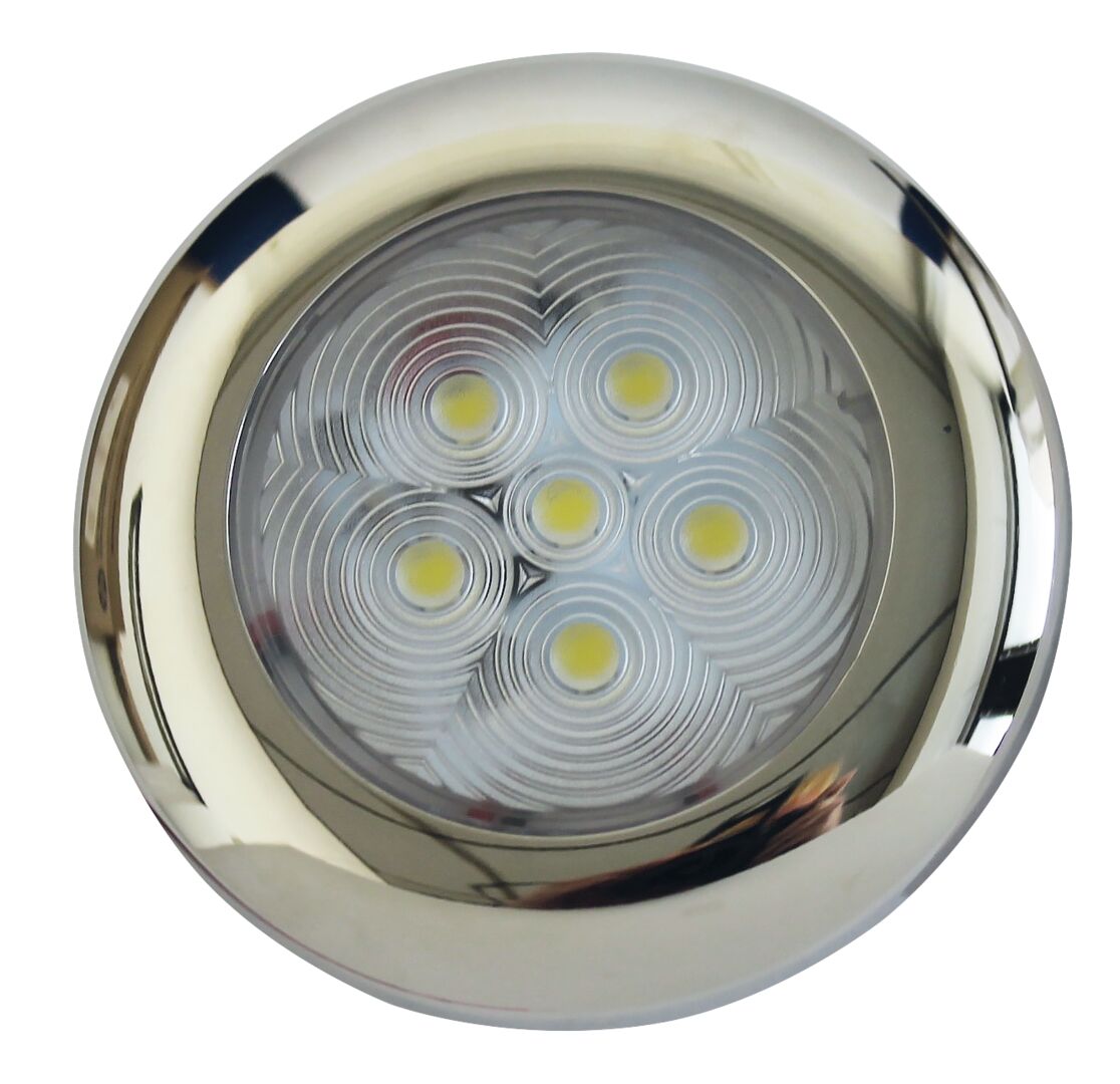 Pinta-asenteinen sisä- ja ulkovalo kuudella päivänvalo-valkoisella LED-valolähteellä. Ø 70,9 mm. Muovirunko ja AISI304 koristerengas. IP67. 12 - 24 V. 1 W.