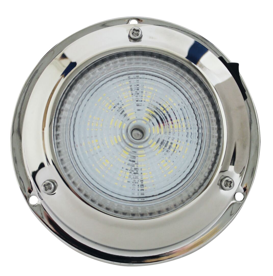 LED-sisävalo 20:lla päivänvalo-valkoisella LED-valolähteellä. IP65-roiskevesitiivis. Ø 106,6 mm. 12 V. Keinukatkaisimella. 3,6 W.