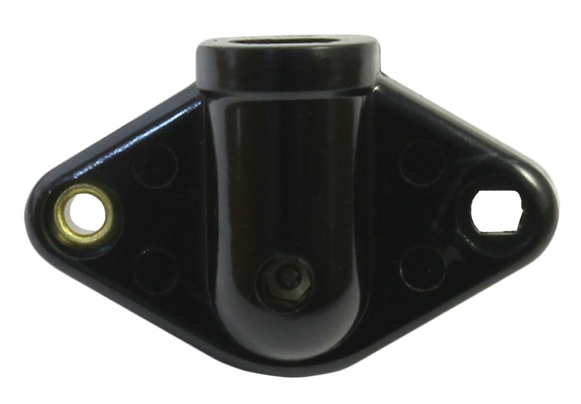 Pistorasia mustaa muovia ja messinkiä. Pohjalevy 58 x 42 mm.