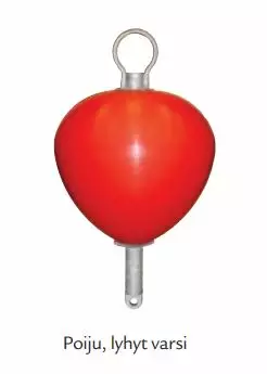 Pitkä varsi on peräpoijua varten ja lyhyt varsi soveltuu avovesipoijuksi.