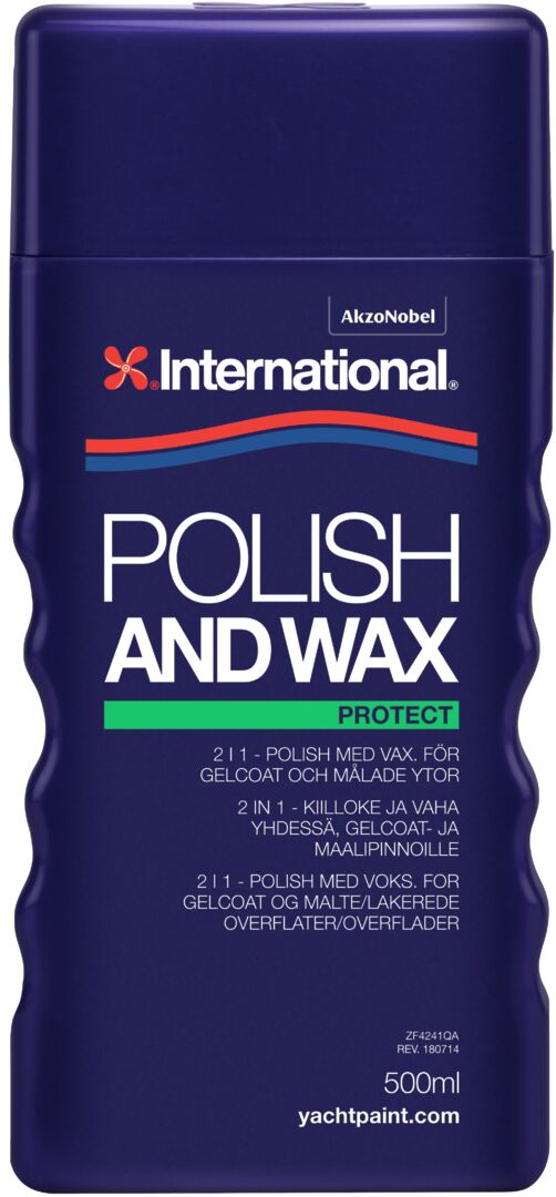 Polish and Wax on puhdistusaine, kiilloke ja vaha samassa tuotteessa. Puhdistaa, kiillottaa ja vahaa nopeasti ja helposti hapettuneen gelcoatin ja maalatut pinnat.<br />Ei sisällä silikoniöljyjä. Käsi- tai koneelliseen käyttöön (800 1000 r/min).<br />• Nopea ja helppokäyttöinen.<br />• Erinomainen isoille pinnoille.<br />• Erittäin kiiltävä lopputulos.<br />• Ei värjää naarmuja<br />• Sopii myös autoille, matkailuvaunuille ja puutarhakalusteille<br />• Mieto tuoksu.<br /><br /><br />KÄYTTÖOHJE<br />Esikäsittely:<br />Puhdista pinta Super Cleanerillä ja makealla vedellä. Anna kuivua.<br /><br />Menetelmä:<br />Levitä Polish and Wax puhtaalla, kuivalla rätillä. Kiillota pyörivin liikkein. Kiillota rätillä tai koneella, kunnes haluttu kiilto on <br />saavutettu. Vaihda rättiä usein.<br /><br />Vihjeitä:<br />Sekoitus - Ravistettava ennen käyttöä.<br /><br />Tärkeitä tietoja:<br />Tuotteen lämpötilan on oltava vähintään 5 °C ja enintään 35 °C.<br />Ympäristön lämpötilan on oltava vähintään 5 °C ja enintään 35 °C.<br />Alustan lämpötilan on oltava vähintään 5 °C ja enintään 35 °C.<br /><br />Yhteensopivuus/Alustat:<br />Sopii gelcoatille ja maalatuille pinnoille.<br /><br />Levitysmenetelmät:<br />Rätti tai kone.