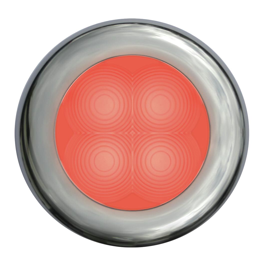 Tekniset tiedot:<br />Linssimateriaali: UV-suojattu, iskunkestävä muovi<br />Kuoren materiaali: Kiillotettu ruostumaton teräs<br />Himmennin: Varustettu Hella Marinen himmentimellä 5XA 998 572-001 (9514014151)<br />Kaapeli: esijohdotettu 120mm merikaapelilla<br />Käyttöjännite: 12V DC or 24V DC<br />Virrankulutus: 0,5 W ( < 0,04 A@12 V / < 0,02 A@24 V )<br />Suojausluokka: IP 67 - Täysin suljettu<br />Asennus: Rst-ruuvit sisältyvät toimitukseen