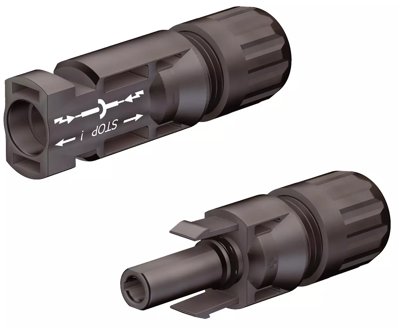 Nopeat, vedenpitävät ja tehokkaat liittimet, jotka puristetaan kaapeleihin. Mahdollistaa paneelien nopean pariliitoksen ilman jännitteen laskua.<br /><br />Pikaliittimet : Uros + naaras