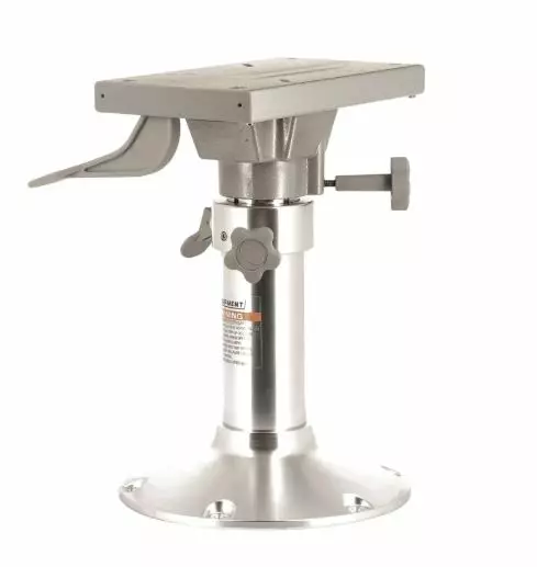Manually adjustable aluminium seat pedestal with slide and (360º) swivel. Polished base.