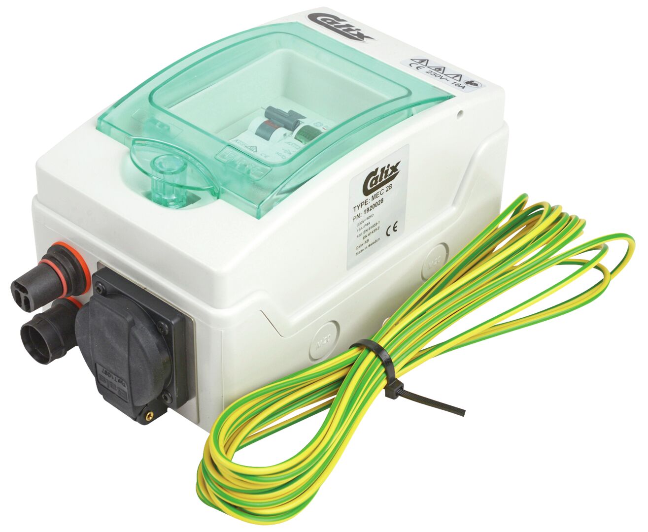 Yksi Calix-sisääntuloliitin sekä kaksi ulostuloliitintä; toinen Calix-liittimellä ja toinen Schukolle. Pieniin tiloihin suunniteltu sähkökeskus on varustettu merkkivalolla sekä vikavirtasuojalla. Korkeus 197 mm, leveys 124 mm ja syvyys 117 mm.