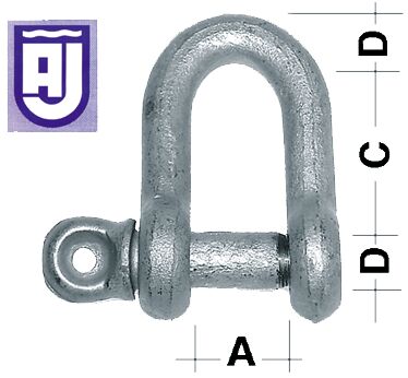 Kuumagalvanoitu sakkeli, taottu, D-malli, testattu.<br />D= 11 mm, A= 20 mm, C= 39 mm, SWL 900 kg.