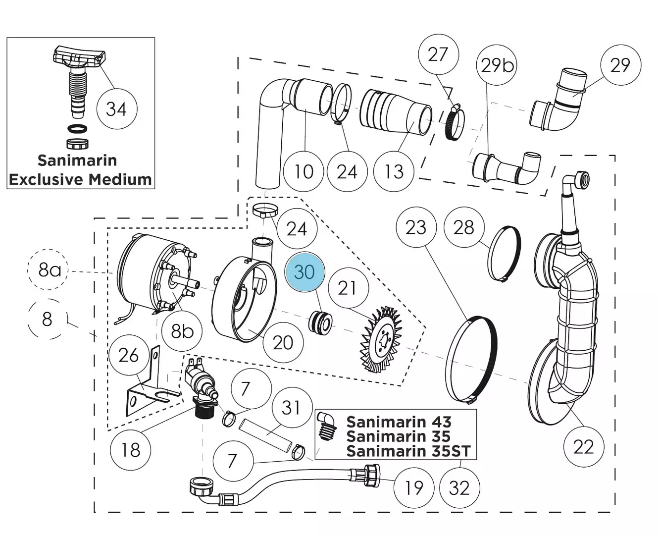 Sanimarin tiiviste varaosana.