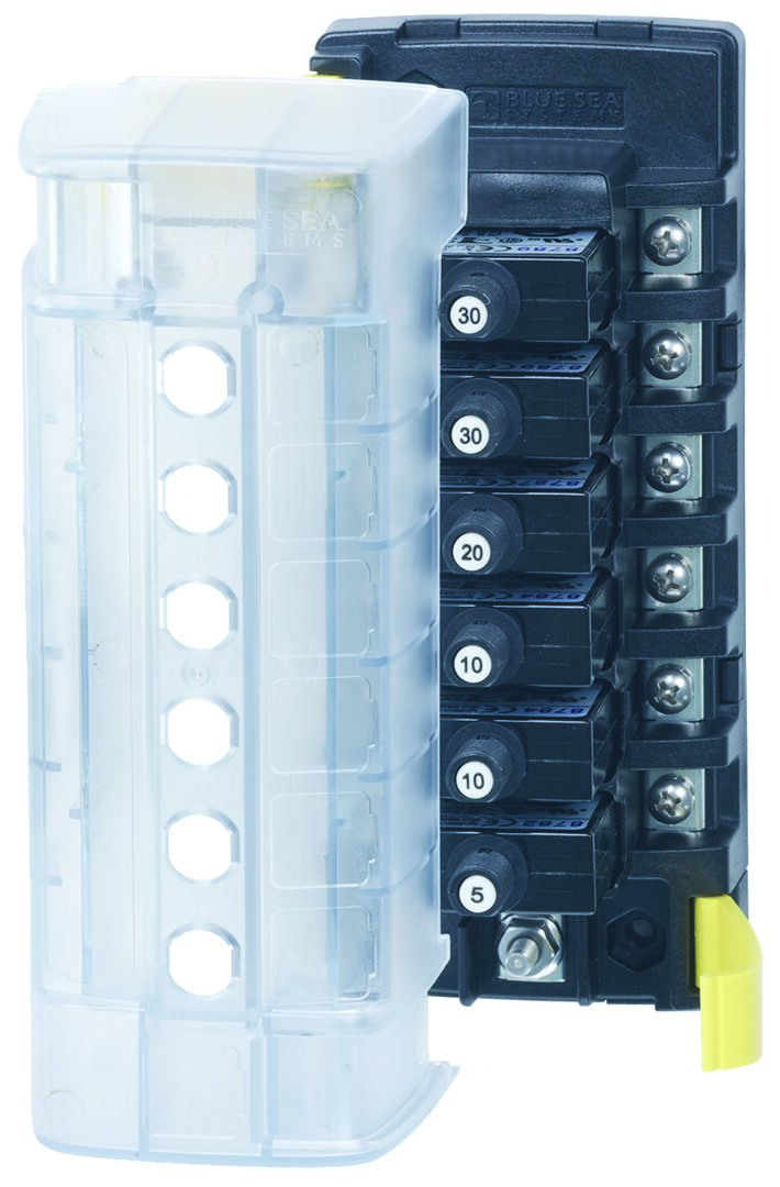 ST CLB SULAKEPESÄ, 6-PAIKKAINEN - ERILLISET VIRTAPIIRIT Nollattavien automaattisulakkeiden etu tavanomaisiin sulakkeisiin verrattuna on yleisesti tunnettu mutta automaattisulakkeet ovat tavanomaisia sulakkeita kalliimpia ja vaikeampia asentaa. Tämä paneeli ratkaisee mainitut ongelmat hyödyntämällä kompakteja paikoilleen napsautettavia CLB-automaattisulakkeita, jotka ovat helposti nollattavissa. Yhtä helppo asentaa kuin tavanomaiset sulakkeet.