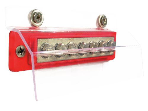Kirkas polykarbonaatti-suojakansi kytkentäkiskoille. Koko 115 x 28 mm.