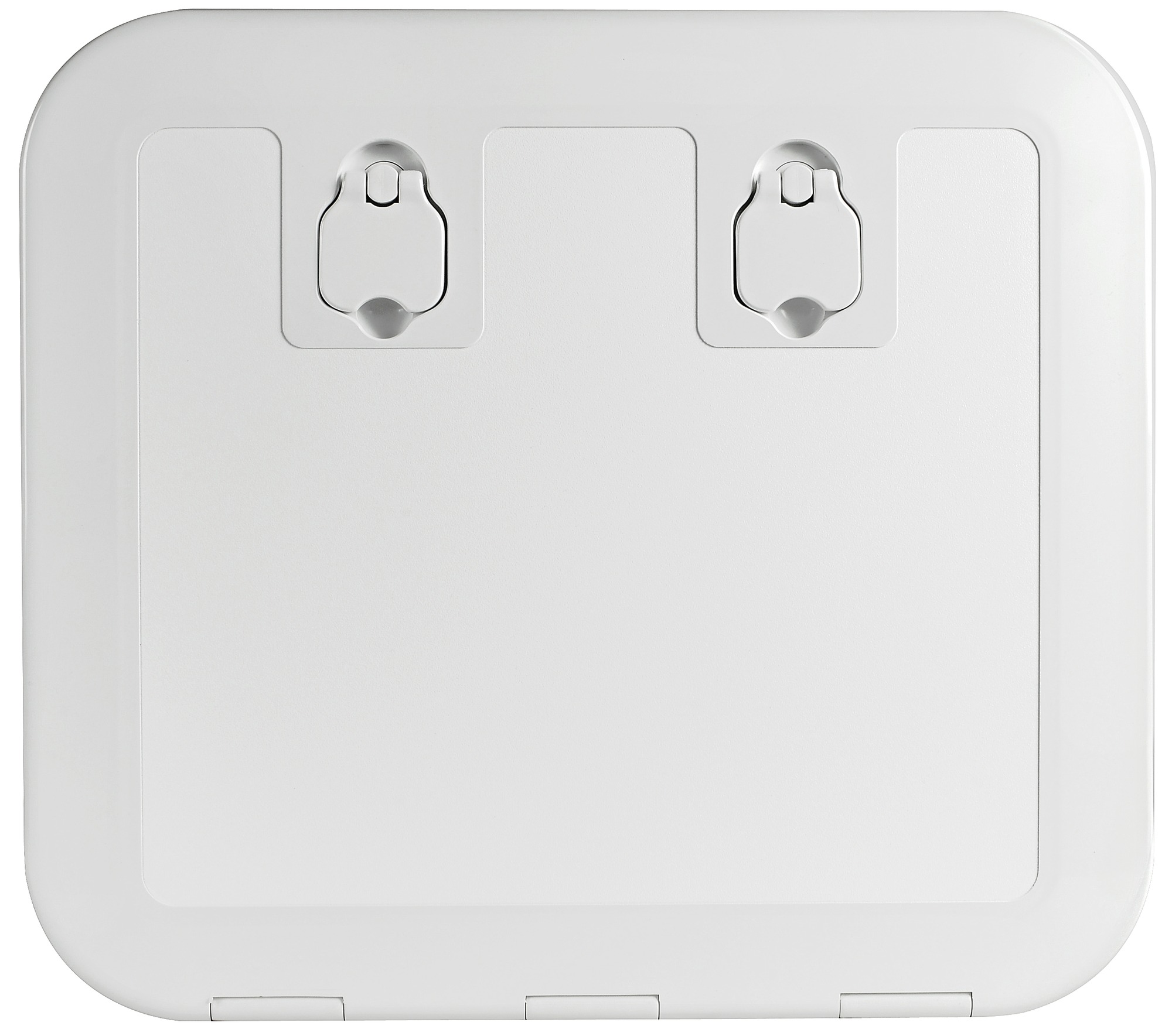 The faired cover hides the frame completely; flush hinges; 180° opening; walking surface. UV BASF resistant. Outside: 520x465mm Inside: 430x375mm Cut: 445x390mm